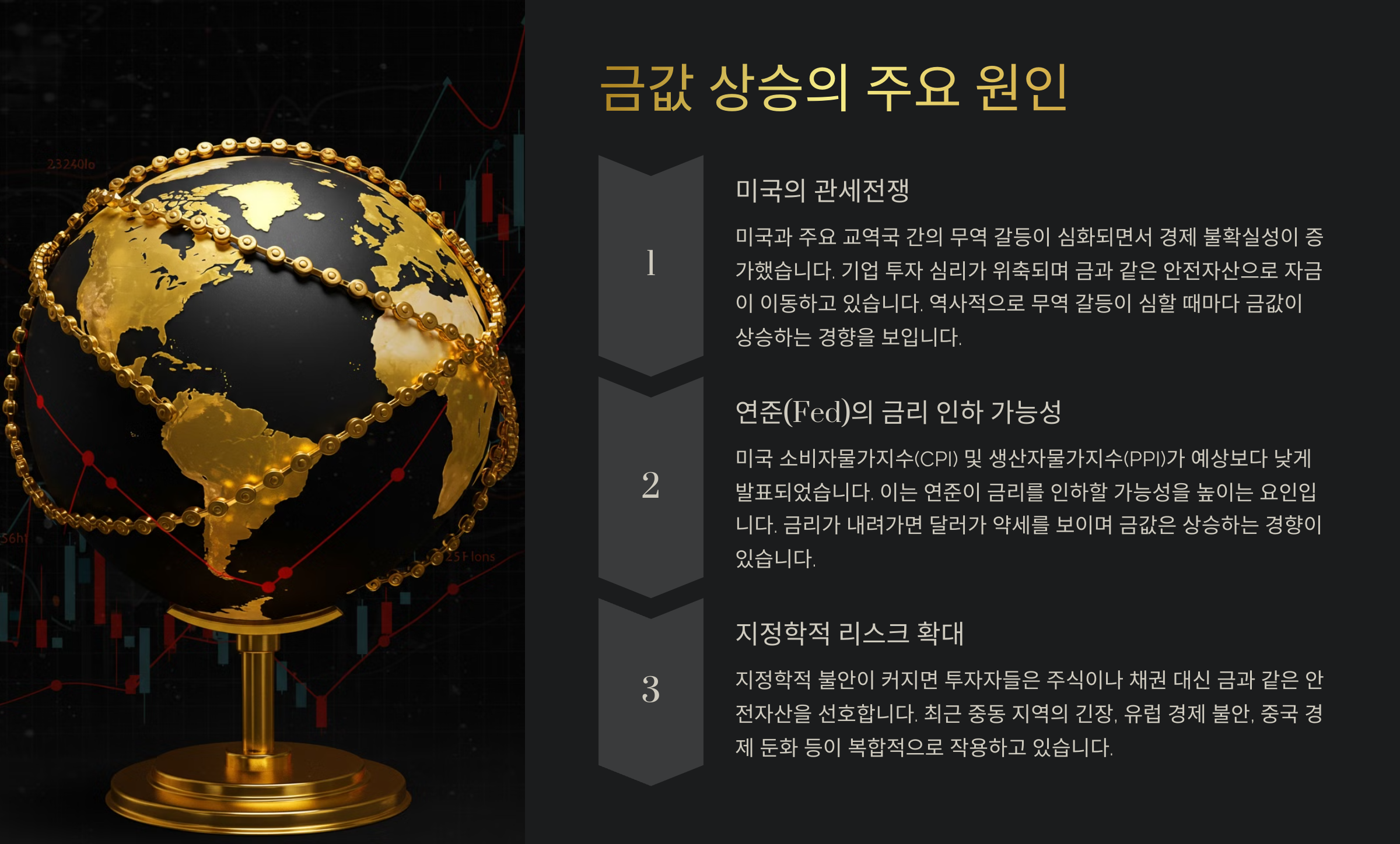 ✔ 금값 상승은 글로벌 경제 불확실성과 연준의 금리 정책 변화 때문