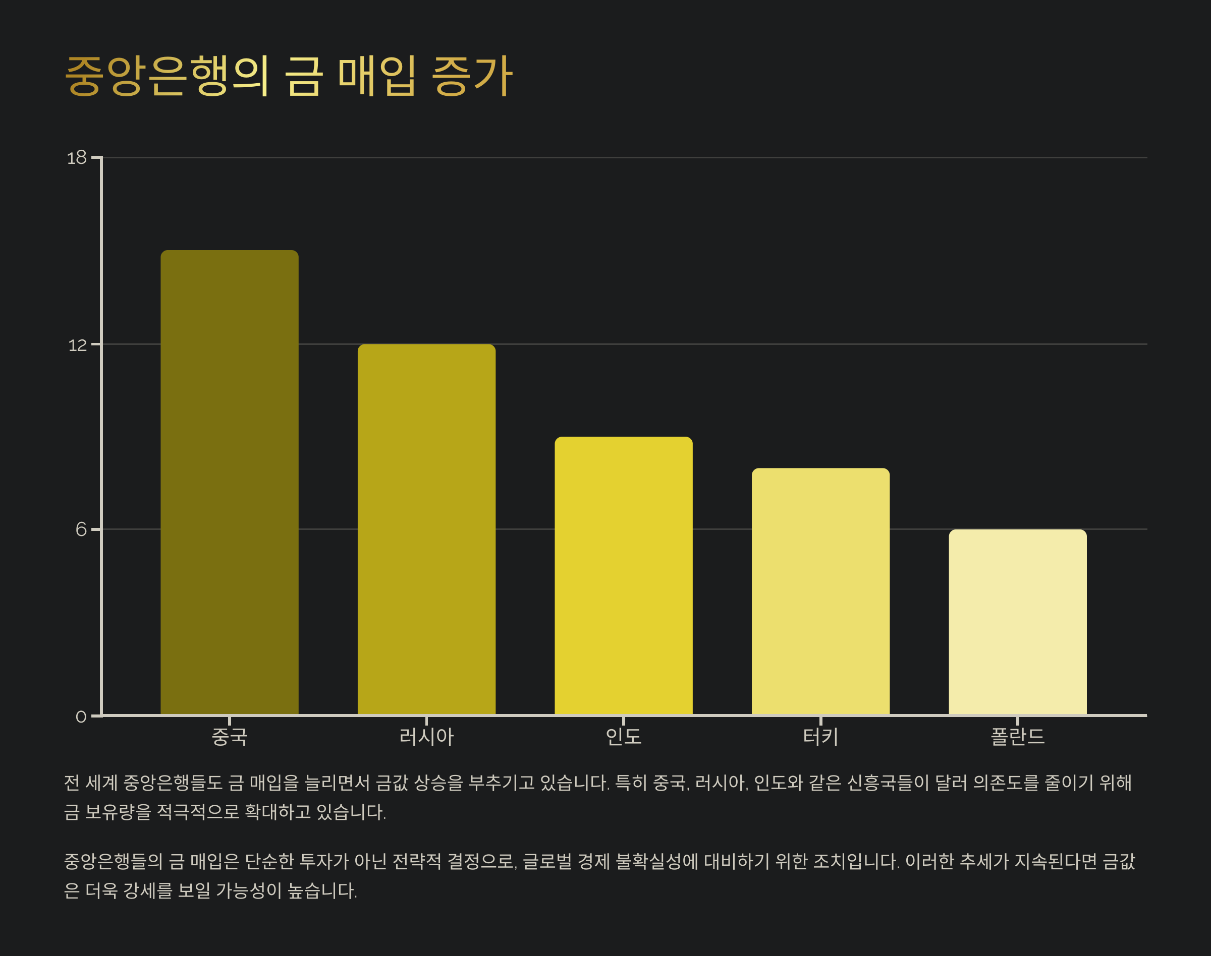 ✔ 중앙은행 및 기관들의 금 매입 증가 – 각국 중앙은행이 금 보유량 확대