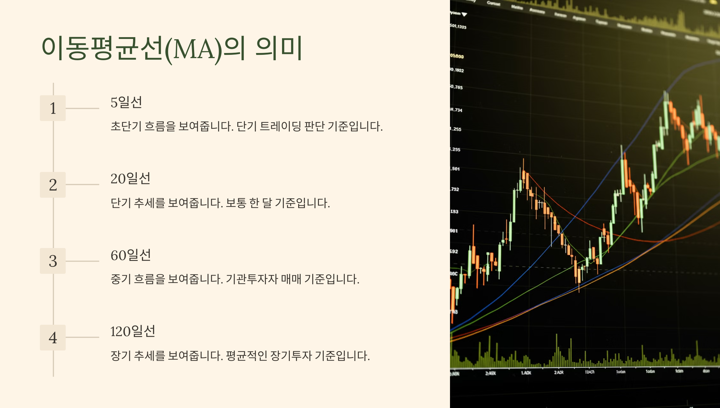 - 5일선: 초단기 흐름 / 단기 트레이딩 판단 기준
