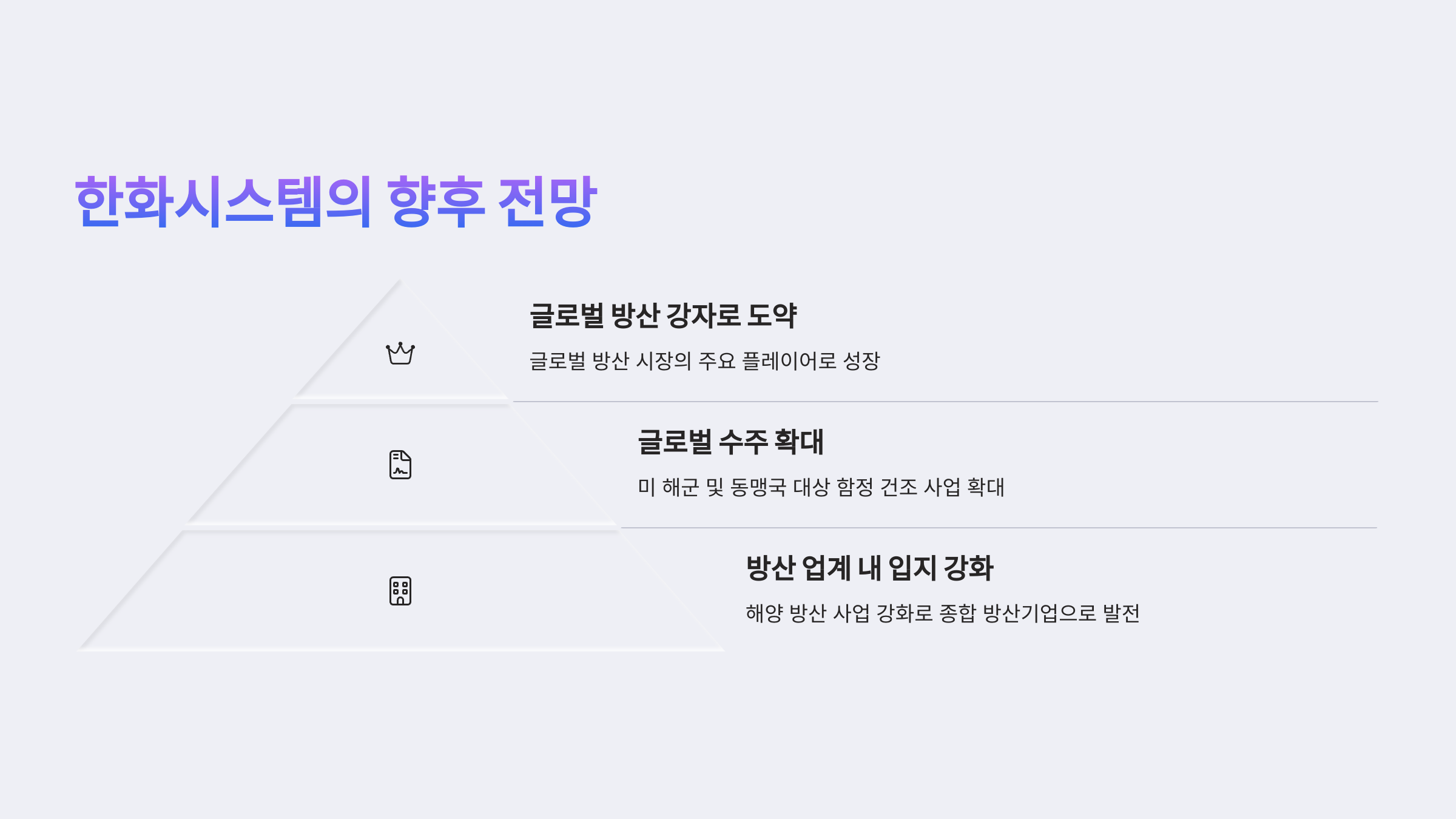 - 한화시스템은 기존에 방산 전자·레이다 시스템 위주였으나, 조선·해군 분야까지 사업을 확장